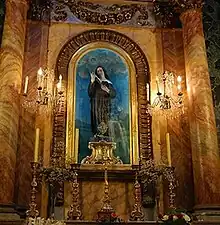 Au centre, la statue de sainte Rita, vénérée par les fidèles, est une œuvre naïve du début du XXe siècle[11].