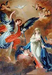 - Le mystère de l'Annonciation qui est le vocable de la chapelle (on peut observer la beauté du visage de la Vierge envahi par la lumière de l’Esprit Saint ; le bleu de son manteau est des plus lumineux) ;