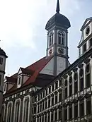Le prince-évêque d'Augsbourg, Henri V (von Knöringen) 1570-1646, fait construire de nouveaux bâtiments pour les séminaristes en 1603-1605, avec une nouvelle église, bâtie en 1611-1617. Elle est consacrée le à l'Assomption de la Bienheureuse Vierge Marie. Les cloches, issues des fonderies de Wolfgang Neidhart, sont bénites en . Les plans de l'église sont dessinés par Hans Alberthal, architecte des princes-évêques d'Eichstätt et d'Augsbourg.