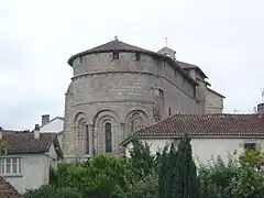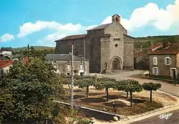 C'est à la fin du XIIe siècle que remontent les parties anciennes de cette église. Le plan primitif, simple mais de dimensions vastes, comportait une abside semi-circulaire, sans déambulatoire, directement raccordée à une nef rectangulaire, dépourvue de bas-côté. En élévation, l'édifice présentait seulement deux étages, marqués par deux corniches avec un clocher, ce dernier peut-être plus important qu'un clocher-mur, c'est du moins ce que laissent imaginer la puissance de certains contreforts et l'écho légendaire des trois cloches. Étant donné la largeur de la nef, Il est peu probable qu'elle fût alors voûtée en berceau. C'est durant les guerres de religion que le troisième étage fut ajouté et le clocher armé de quatre contreforts, dont deux très massifs. Par ces travaux assortis d'aménagements défensifs, tels que créneaux et orifices pour arquebuse, les habitants entendaient se prémunir contre les incursions des gens de guerre, si fréquentes et si dommageables en ces temps troublés.