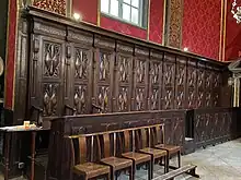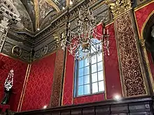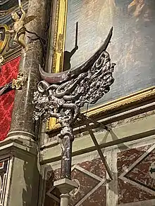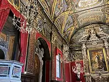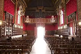 Les stucs des chapiteaux, corniches et moulures de la voûte datent des années 1618-1619. Ils ont été dorés à la feuille au début du XIXe siècle[3].