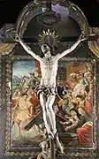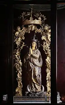 Le retable du maître-autel date de 1624[3]. Les incrustations de marbre polychrome, les colonnes imposantes et les trois statues nous indiquent la grande qualité et le coût important de l’œuvre[3].
