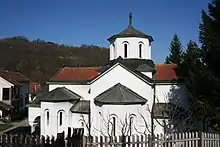 L'église, qui s'appuie sur un socle en pierres, est construite en béton enduit de plâtre ; elle s'inscrit dans un plan tréflé, avec une voûte en berceau et une coupole centrale circulaire qui, à l'extérieur, prend la forme d'un dôme octogonal ; cette coupole est soutenue par quatre piliers massifs[4]. À l'est, se trouvent une abside et, de part et d'autre du chœur, deux autres absides, l'une pour la proscomidie et l'autre pour le diakonikon ; ces trois éléments architecturaux, demi-circulaires à l'intérieur, sont pentagonaux à l'extérieur[4]. En plus de ces trois absides, Korunović en a ajouté deux autres au nord et au sud du porche d'entrée, juste en dessous du narthex ; l'une sert d'ossuaire et l'autre abrite un baptistère[4]. Tous les murs intérieurs sont enduits de plâtre et peints en blanc, à l'exception des surfaces les plus petites qui sont richement colorées.