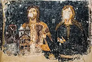 Autre fresque, avec le donateur, sa famille et une maquette de l'église