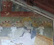 Les peintures qui encadrent la porte d'entrée nord portent la date de « (M)CCCCLXX.. » soit entre 1470 et 1489. Ces peintures correspondent pourtant à une période où le syndic de Saorge se plaint du manque d'entretien mais en écrivant à l'abbé de Lérins que «les hommes de Saorge pour la majeure part font enterrer leur cadavre dans la dite église ou dans son cimetière». Les peintures de l'église retrouvées dans l'abside et sur le mur nord ont probablement été financées par des paroissiens pour améliorer la décoration de l'église, peut-être à la suite de l'incendie de l'église paroissiale Saint-Sauveur, en 1465. Ces dernières peintures représentent des scènes de la vie de la Vierge. Il église aussi une peinture représentant sainte Lucie dans la première travée de la nef, plus tardive (XVIe siècle). Ces peintures de la nef ont été classées en 1982. Par comparaison stylistique et la date de réalisation les ont fait attribuer à Giovanni Baleison. Elles rappellent les peintures faites dans la chapelle Saint-Sébastien de Venanson.