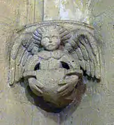 La tribune, en pierre délicatement sculptée, arbore au centre le blason du chapitre des chanoines: une Vierge à l'Enfant et, latéralement, dans les écoinçons, des angelots jouant, au sud de la guitare, et au nord du serpent.