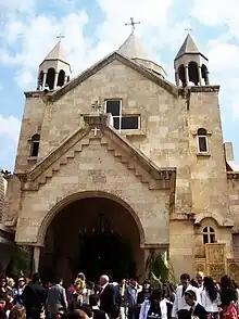 Un khatchkar (sculpté par Sarkis Balmanougian) commémorant les victimes du génocide arménien a été érigé à la droite de l'entrée en 1993. L'église a été restaurée en 1998. Contre l'église se trouvent l'école arménienne Gertasirats et le théâtre arménien Zohrab Kapriélian.