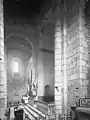 Le clocher, tour carrée à toit presque plat, est couvert d'une coupole sur trompes. La nef a été pratiquement entièrement reconstruite. La façade, moderne, s'élève sur les bases de fortes colonnes romanes.
