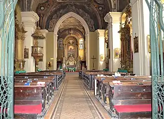 En plus du maître-autel, dédié à la Vierge Marie, l'église possède quatre autels latéraux. L'intérieur date en grande partie du XIXe siècle.