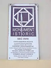 Monument historique, l'église est classée au patrimoine immobilier de la Roumanie sous le nom de l‘ancienne église des Jésuites. Avec l’ancienne résidence jésuite qui est aujourd’hui le centre paroissial, elle occupe le côté septentrional de la ‘Grand place’ historique de la ville, juste à côté de l’hôtel de ville. Sur le côté occidental de la même place se trouve le palais Brukenthal (aujourd’hui musée national Brukenthal). Quelques maisons du côté méridional sont également monuments historiques. L’ancien collège jésuite, aujourd’hui ‘Collège national Gheorghe Lazăr’ se trouve ‘rue Gheorghe Lazăr’, à deux pas, au sud, de la Grand place.