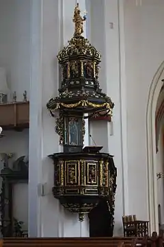 Après 1958, l'église a été autorisée à être reconstruite sous une forme qui ne reflète pas l'histoire calviniste de l'église, notamment en termes de plan de l'église, mais qui est appropriée pour le culte catholique. Il y a un maître-autel baroque dans le choeur, qui n'est pas original dans la décoration intérieure de l'église. 60 % des détails authentiques de cet autel seront installés, dont une peinture baroque de l'Immaculée Conception de la Bienheureuse Vierge Marie. Dans le bas-côté nord se trouve une stalle Renaissance du XVIIe siècle. À l'intérieur de l'église se trouvent des éléments de sculpture sur bois baroque. Il était prévu de recréer la galerie de musique dans le bas-côté sud, en utilisant certaines boiseries authentiques. Au bout du bas-côté nord se trouvent des fonts baptismaux gothiques conservés du XVe siècle.