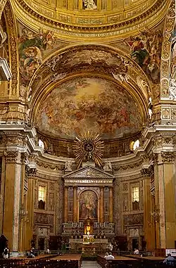 Au-dessus de l'autel de l'église du Gesù de Rome: le IHS et SS. nomini Iesv sacrum