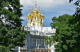 L'aile nord de l'église palatine est couronnée de cinq dômes dorés. Initialement un seul dôme état prévu, mais le l'impératrice Elisabeth Petrovna décida de ne pas réaliser un seul dôme au dessus de l'église mais cinq petit. Le projet a donc été modifié en ce sens.