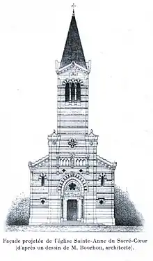 La paroisse est créée par le cardinal de Bonald en 1859 pour prolonger le service des Petites sœurs des pauvres de La Villette. Une fonderie située rue Baraban accueille le premier culte de ce quartier ouvrier et pauvre avant que ne soit acquis auprès de Benoît Turbil un espace de 7 500 mètres carrés. L'architecte Pierre Bossan, qui construira plus tard la basilique Notre-Dame de Fourvière, conçoit les plans de l'église. Mais faute d'argent, la taille et l'ornementation sont moindres qu'à l'église de l’Immaculée Conception qu'il vient d'achever. L'église n'aura jamais son transept, ni le clocher prévue et encore moins de façade. L'église est toutefois consacrée le . Inachevée, elle est fermée au culte au 1938 et détruite en 1939. La place Saint-Anne perpétue la mémoire de la première église du quartier.
