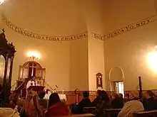A l'intérieur, des versets sont peints sur les murs, « Dice Jesus : yo soy la luz del mundo. » (Évangile selon Jean 8, 12) et dans le chœur « Predicad el Evangelio a toda criatura » (Évangile selon Marc 16, 15).