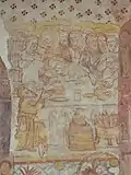 Les murs du temple, de style roman, portent un ensemble de fresques datant du début du XVe siècle. Le mur nord retrace la Création et les tribulations de l'homme, le mur sud est réservé au Christ, sauveur de l'humanité. Dans le chœur, au-dessus de l'arc triomphal, ne subsiste que le registre inférieur.