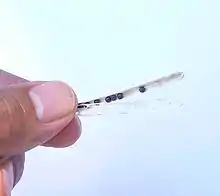 Chez les céréales (monocotylédones), l'égrenage est lié à l'abscission des épillets qui se séparent de la panicule (riz, millet) ou à la désarticulation de l'axe des épis (blé, orge, seigle)[2]. Chez les blés de types sauvages par exemple, l'épi est facilement décomposé en unités de dispersion, ou semences, par désarticulation à la suite d'un simple contact ou sous l'effet du vent. En effet, pendant la période de maturation, une série de couches d'abscission divisent le rachis en segments courts, qui restent attachés chacun à un seul épillet (lequel peut contenir 2 à 3 grains avec la balle).