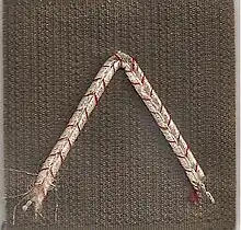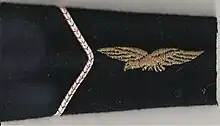 L'insigne de la tenue de combat (treillis) était identique : un fin galon argenté, en forme de lettre "V" inversée, liseré de chevrons de couleur rouge. Il était donc porté avec la pointe du "V" vers le haut, sous sa forme de rectangle doté d'un velcro (appelé familièrement "scratch").