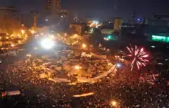 En 2010, il reste silencieux sur une éventuelle candidature à sa propre succession et pense être libre de préparer son fils Gamal à sa succession. Or, en , une vague de protestations populaires déferle sur le monde arabe, dont l'Égypte. C'est ainsi que le , le président promet « des réformes économiques et politiques », et annonce qu'il ne sera pas candidat à l'élection[15] et son vice-président Omar Souleiman annonce que le raïs renonce à faire de Gamal Moubarak le candidat du PND, le parti au pouvoir en Égypte. Le , Moubarak démissionne de son poste présidentiel à la suite d'une série de protestations du peuple égyptien.