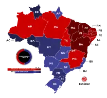 Lula remporte le second tour avec 50,90 % des suffrages exprimés, soit l'écart de voix le plus serré pour un second tour d'une élection présidentielle depuis la fin de la Dictature militaire en 1985. Malgré une victoire plus compliquée qu'attendue, il parvient ainsi à décrocher la présidence du pays pour la troisième fois après son élection en 2002 et 2006[51].