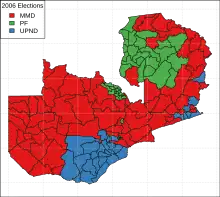 Carte des résultats de l'élection présidentielle zambienne de 2006