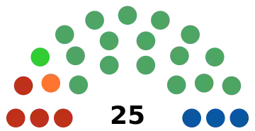 | 25 sièges du congrès étatique (Majorité absolue : 13 sièges) | ||||||||||||||