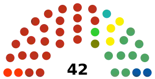 | 42 sièges du congrès étatique (Majorité absolue : 22 sièges) | ||||||||||||||