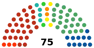 | 75 sièges du congrès étatique (Majorité absolue : 38 sièges) | ||||||||||||||