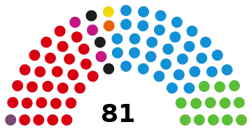 | Année | Participation | Hémicycle | Parti en tête | Score | Sièges | Président | |||