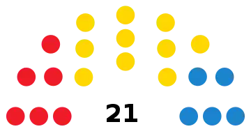 | Parti | Voix | % | +/- | Sièges | +/- | |||||||||