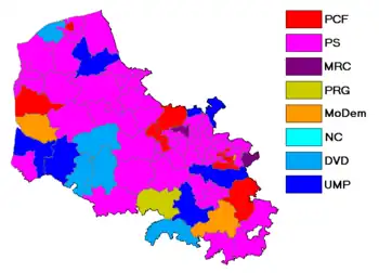 | Front de gauche (Parti communiste français, Parti de gauche) | FDG | 11 | 6 | 36 254 | 14,18 | 30 877 | 13,29 | 6 | 11 | ||