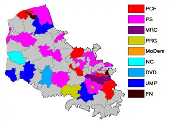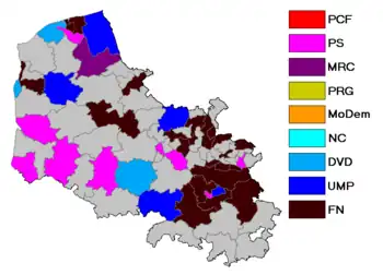 Les élections cantonales ont eu lieu les 20 et [1]. Ces dernières ont été marquées par une percée du FN, notamment sur le bassin minier. Néanmoins, le statu quo règne, la gauche gagne deux cantons sur la droite, tandis que la droite en prend deux sur la gauche