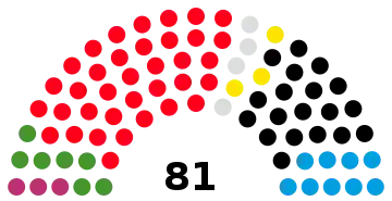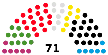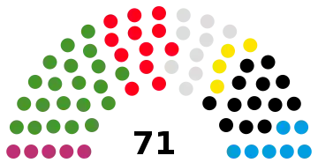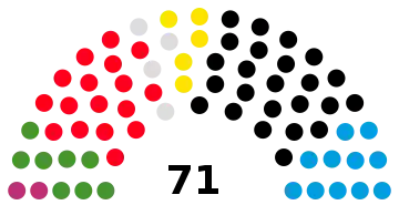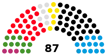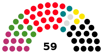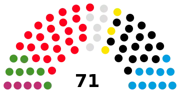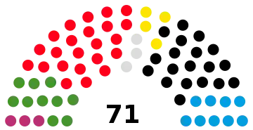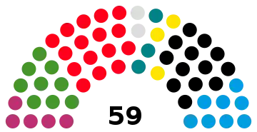 | Parti | Voix | % | +/- | Sièges | +/- | |
