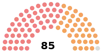 | 85 sièges de l'Assemblée législative (Majorité absolue : 43 sièges) | ||||||||||||||