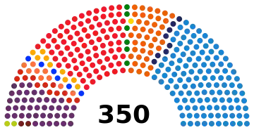 - les 350 députés élus au scrutin proportionnel de liste par province avec un seuil minimum de 3 % pour être représenté.