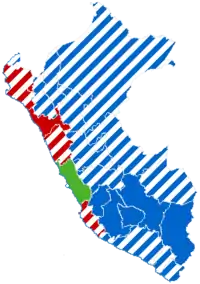 Humala l'a emporté dans les régions andines, l'Amazonie et le sud du pays, Alan García a bénéficié du soutien des fiefs électoraux traditionnels de l'Alliance populaire révolutionnaire américaine dans les régions côtières du Nord et Lourdes Flores est arrivée première dans la région de la capitale Lima.