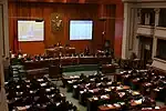 Les cent quarante députés sont choisis dans douze circonscriptions, qui correspondent aux douze préfectures du pays et disposent de quatre à trente-deux sièges en fonction de la population. Pour entrer à l'Assemblée, un parti doit remporter au moins 3 % des suffrages exprimés au niveau national, une coalition 5 % au minimum.