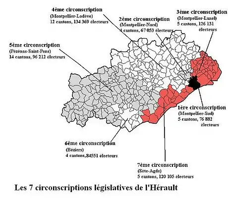 1re circonscription cantons de : Nîmes-1 - Nîmes-3 - Nîmes-4 - Nîmes-5 - Nîmes-6 - La Vistrenque.