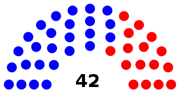 | 42 sièges de l'Assemblée (Majorité absolue : 22 sièges) | ||||||||||||||