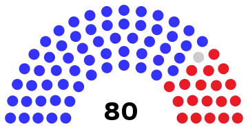 | 80 sièges de l'Assemblée (Majorité absolue : 41 sièges) | ||||||||||||||