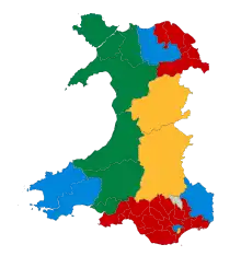 Les 60 membres de l'Assemblée générale du pays de Galles sont élus suivant un système mixte. La région est divisée en 40 circonscriptions électorales qui élisent chacune un AM au scrutin uninominal majoritaire à un tour. Ces circonscriptions sont réunies en cinq régions électorales, qui élisent chacune quatre AM en suivant la méthode d'Hondt.