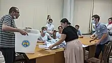 Le , bien qu'elle ne soit pas légalement tenue de le faire, Maia Sandu demande à la Cour constitutionnelle de constater l'échec de deux gouvernements à obtenir la confiance du Parlement dans un délai de quarante-cinq jours, ce que la Cour confirme le , ouvrant la voie à la convocation des élections anticipées[60],[61],[62]. Entre-temps, le , cependant, le Parlement décrète l'état d'urgence pour deux mois — au cours duquel des élections ne peuvent légalement être organisées — en raison de la crise sanitaire liée à la pandémie de Covid-19. La décision du Parlement est suspectée d'avoir directement pour objectif de retarder la tenue du scrutin, aucune autre mesure n'ayant été prise contre la pandémie[63],[64],[65]. Le , la Cour constitutionnelle juge invalide la mise en place de l'état d'urgence, la nécessité de confier des pouvoirs accrus à l'exécutif ayant été insuffisamment justifiée, et son décret effectué sous un Premier ministre par intérim et non de plein exercice[66],[67]. Dans l'heure qui suit, Maia Sandu procède à la dissolution du parlement et convoque des élections anticipées pour le [68].