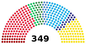 Le Riksdag est composé de 349 sièges pourvus pour quatre ans au scrutin proportionnel plurinominal[16]. La Suède possède la particularité d'avoir des élections à dates fixes combinées à un régime parlementaire dans lequel des élections anticipées peuvent être convoquées. Dans ce dernier cas, la législature nouvellement élue ne l'est que pour le restant du mandat de quatre ans entamé par la législature précédente. Des élections législatives sont par conséquent organisées quoi qu'il arrive le second dimanche du mois de septembre à intervalles de quatre ans, en même temps que les élections municipales et régionales[17].
