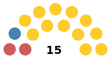 | 15 sièges de l'Assemblée (Majorité absolue : 8 sièges) | ||||||||||||||