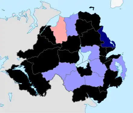 Le , le Local Government (Boundaries) Act (Northern Ireland) (en)[1], une loi du Parlement d’Irlande-du-Nord, institue 26 zones de gouvernement local qui sont définis précisément dans le Local Government (Boundaries) Order (Northern Ireland) du [2]. Est alors abrogé le système hérité du Local Government (Ireland) Act (en) du introduit par le Parlement du Royaume-Uni.