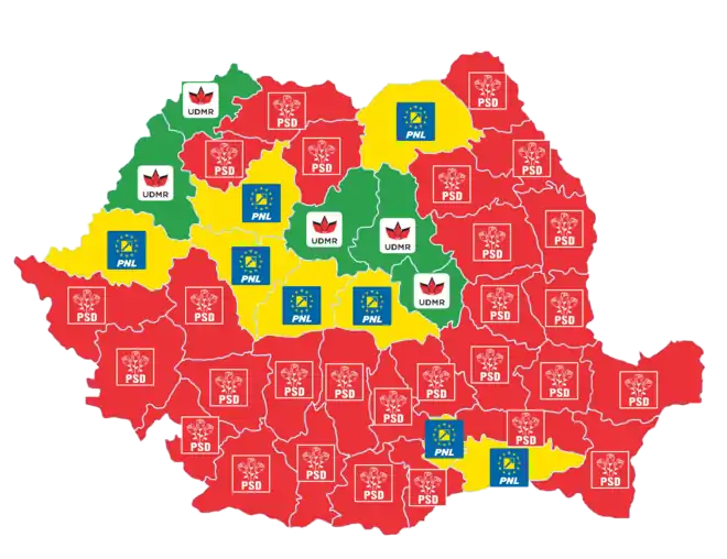 | Suceava | Cătălin Nechifor | PSD | Gheorghe Flutur | PNL | 16 | 21 | |||||||||||||||