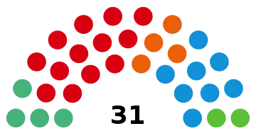 | 31 conseillers municipaux (majorité absolue : 16 conseillers municipaux) | ||||||||||||||