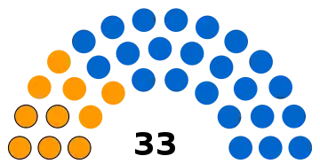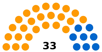 - 33 sièges à pourvoir au conseil municipal (population légale 2017 : 11 156 habitants)