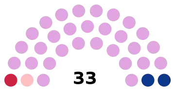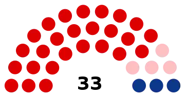 | Conseillers municipaux | 7 | 11 | 15 | 19 | 23 | 27 | 29 | 33 | 35 | 39 | 43 | 45 |