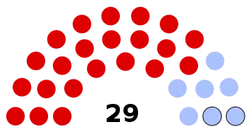 - 29 sièges à pourvoir au conseil municipal (population légale 2017 : 9 874 habitants)